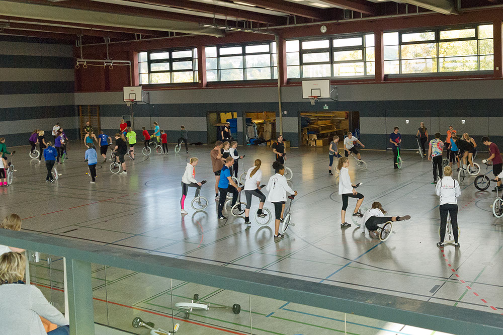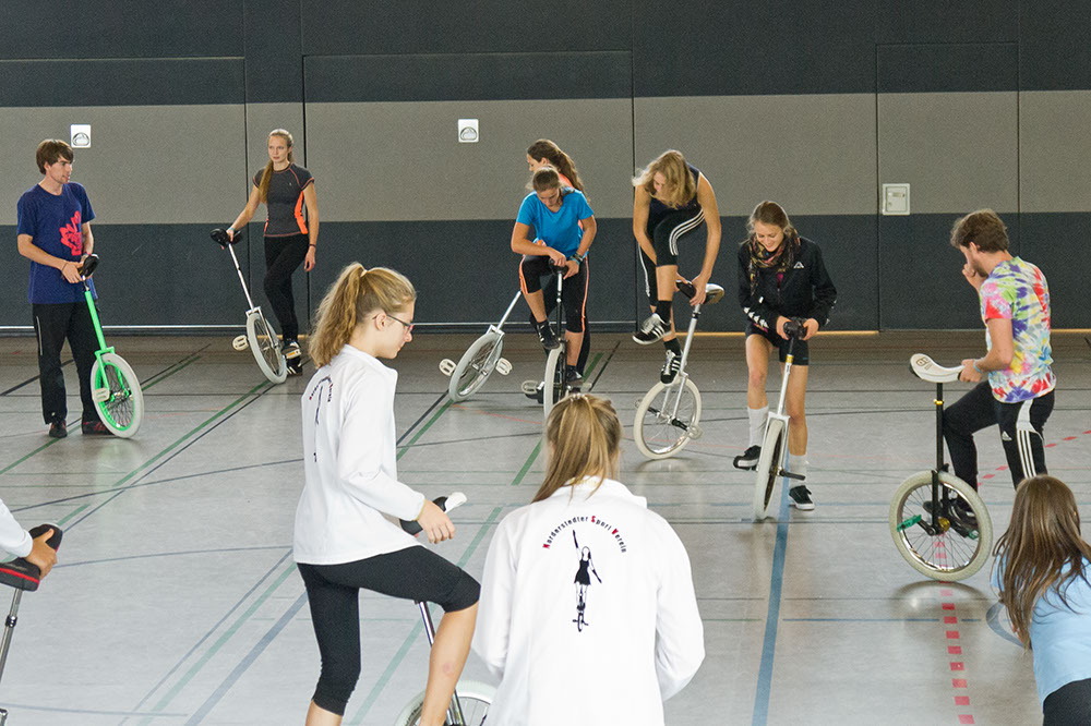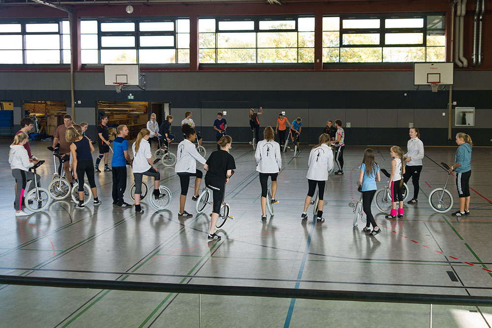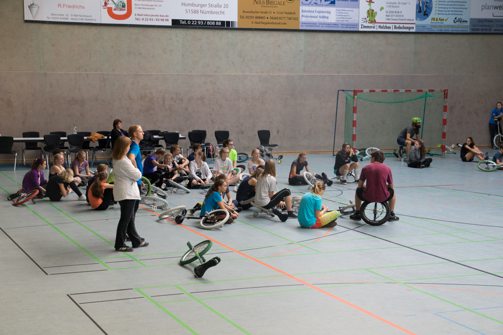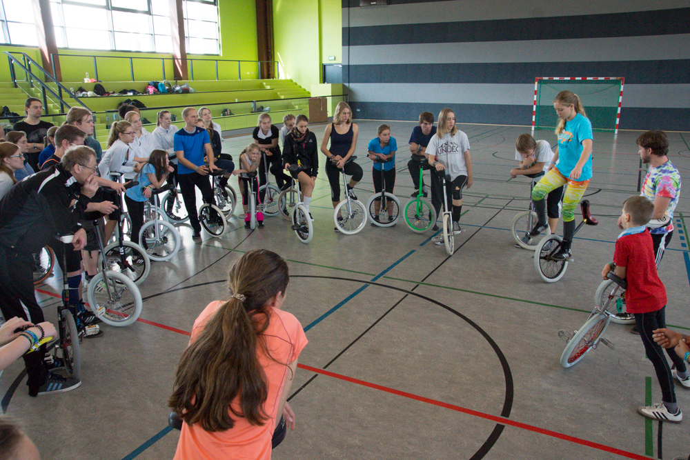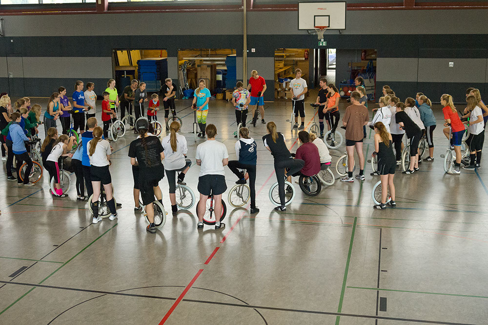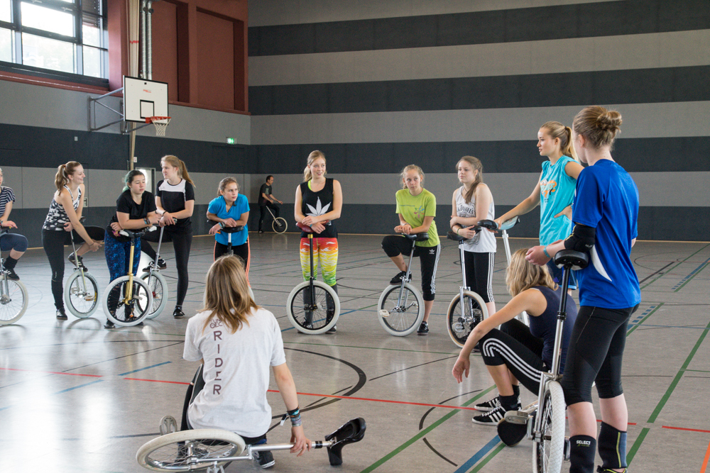 Am 17. und 18. Oktober fand in Nümbrecht im Bergischen Land unweit Kölns die AJATA-FREESTYLE-CONVENTION 2015 statt – der größte Einradworkshop des Jahres mit 128 Teilnehmern, darunter absolute Spitzenfahrer wie die Expert-Weltmeisterin im Freestyle von 2014 Katrine Jensen aus Dänemark. Ein Top-Team aus Trainern mit zum Beispiel Janna, Maren und Till Wohlfarth, Felix Dietze, Thomas Gossmann, Scott Wilton, Anna-Lena Blaschke, Nicolas Neumann, Alexander Ladikoff, Andrea Kreppel oder David Weichenberger sorgte für allerbeste Trainingsmethodik und der Vereinstrainer Peter Kaufmann von den gastgebenden Nümbrechter Einradlern für eine perfekte Organisation drum herum.
