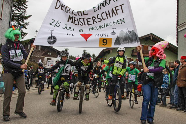 Um die Einwohner rund um den Teisenberg schon im Vorfeld ein wenig darauf einzustimmen, dass im Sommer solch ein bedeutsames, sportliches Großereignis bei ihnen stattfinden wird, rührten die Neukirchener Einradler im Rahmen des Teisendorfer Faschingszuges kräftig die Werbetrommel. Unter die ca. 30 Fahrer hatte sich Henriette gemischt, so dass auch wir Garser einen klitzekleinen Beitrag für die Publicity leisten konnten.