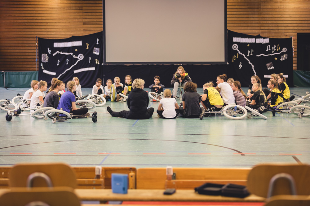 Ein Film mit Impressionen der Einrad-WM des Sommers 2016 in San Sebastian verschaffte den Sportlern ein paar Minuten zum Umziehen für den nächsten Kürblock und den Zuschauern Eindrücke von dieser wunderbaren, großen Einradveranstaltung.