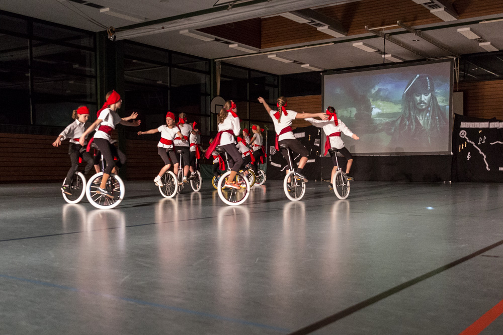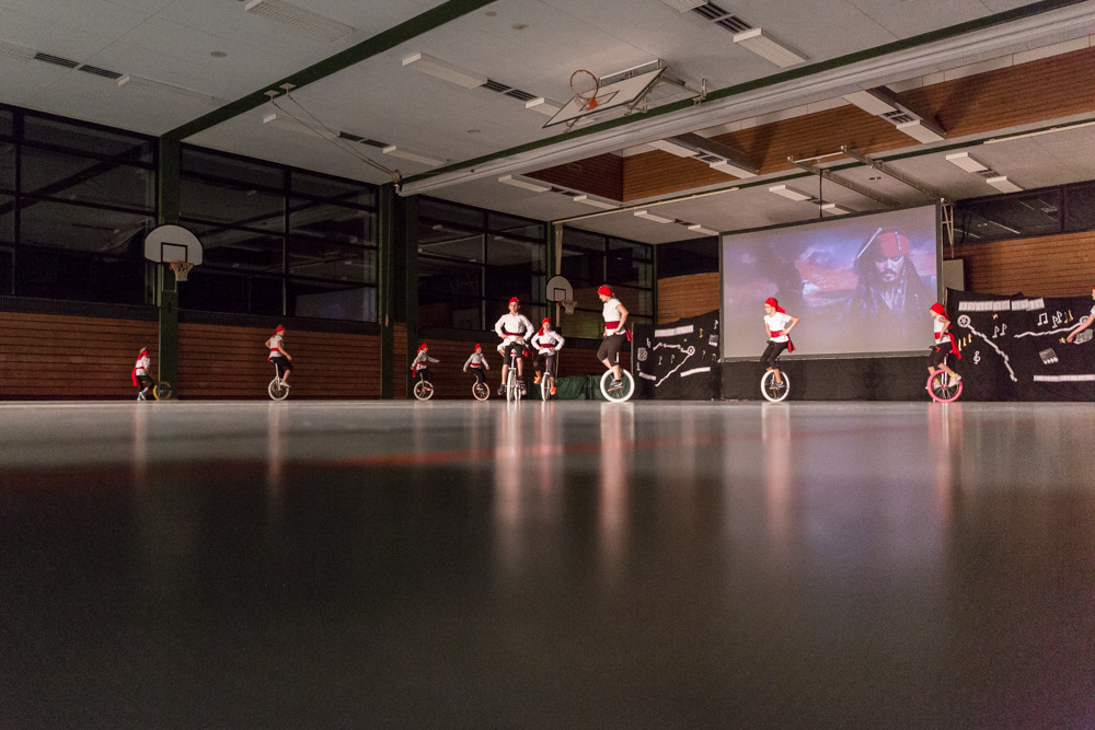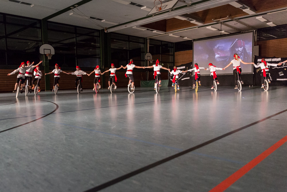 Danach waren noch mal die Freizeitfahrer an der Reihe und wirbelten als stolze Seeräuber zu „Pirates of den Caribbean“ durch die Halle.