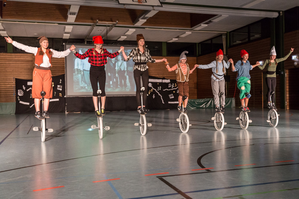 Und bevor „Unser Einradjahr in Bildern“ auf der großen Leinwand zu sehen war, gaben die „Sieben Zwerge“ ihren umjubelten Auftritt.